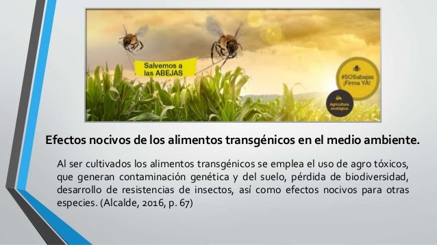 Daño a la vida silvestre y al suelo. Los plaguicidas de los cultivos transgénicos matan a los insectos y bacterias que son útiles y que viven en la tierra. También pueden ser dañinos para las aves, murciélagos y otros animales que ayudan en la polinización de plantas y control de plagas.