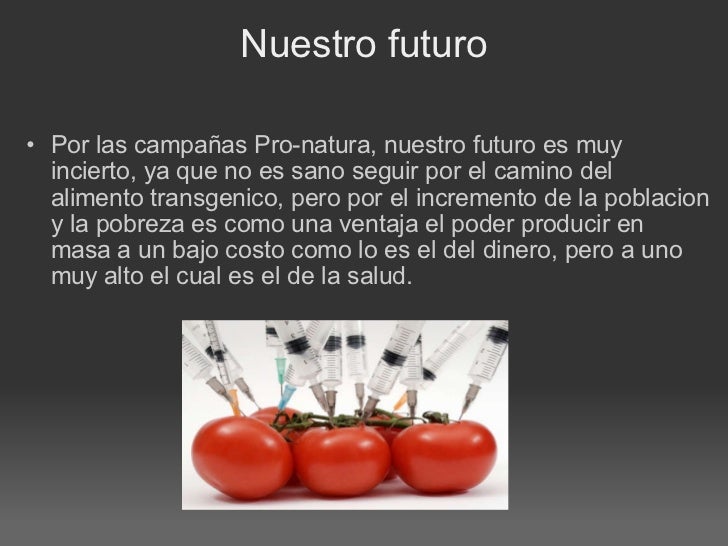 Sin embargo, las grandes empresas y los gobiernos siguen probando diariamente los alimentos transgénicos, obligándonos a sembrarlos y consumirlos sin saber con seguridad el daño que pueden causar. ¡Nos están forzando a “averiguar la profundidad del río” metiendo las 2 piernas en vez de una!